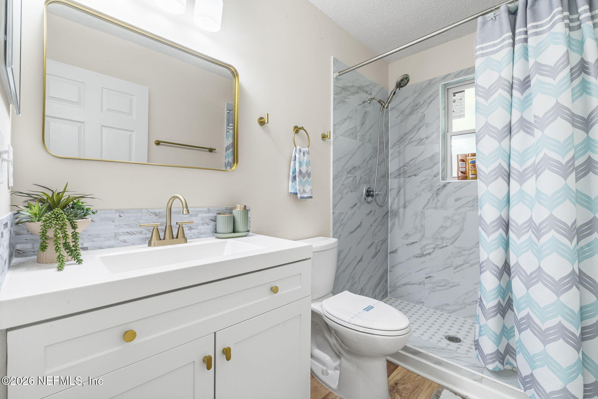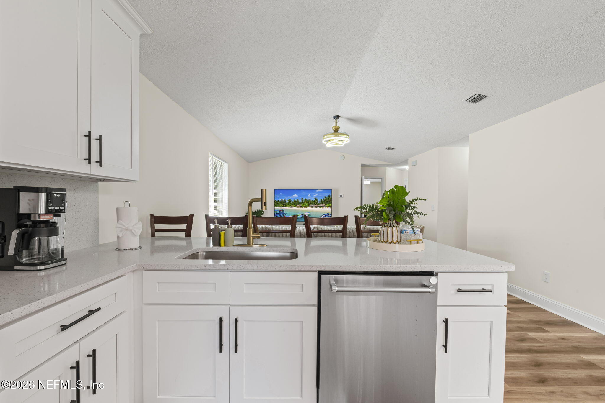 The beautifully designed kitchen combines style and functionality with quartz countertops, a large center island, tile backsplash, and stainless steel appliances. The private primary suite offers a relaxing retreat with dual vanities and an oversized walk-in closet. The second and third bedrooms share a full bath, while the versatile den provides an additional sleeping space and entertainment area--perfect for rainy or quiet days at home. The garage has been set up as an indoor gym, and a washer and dryer are included for added convenience.