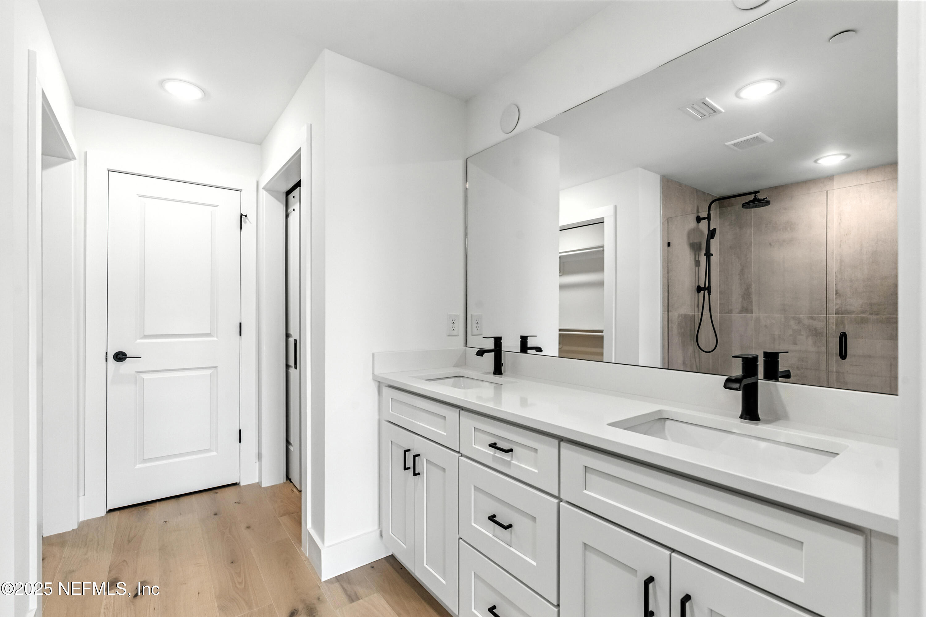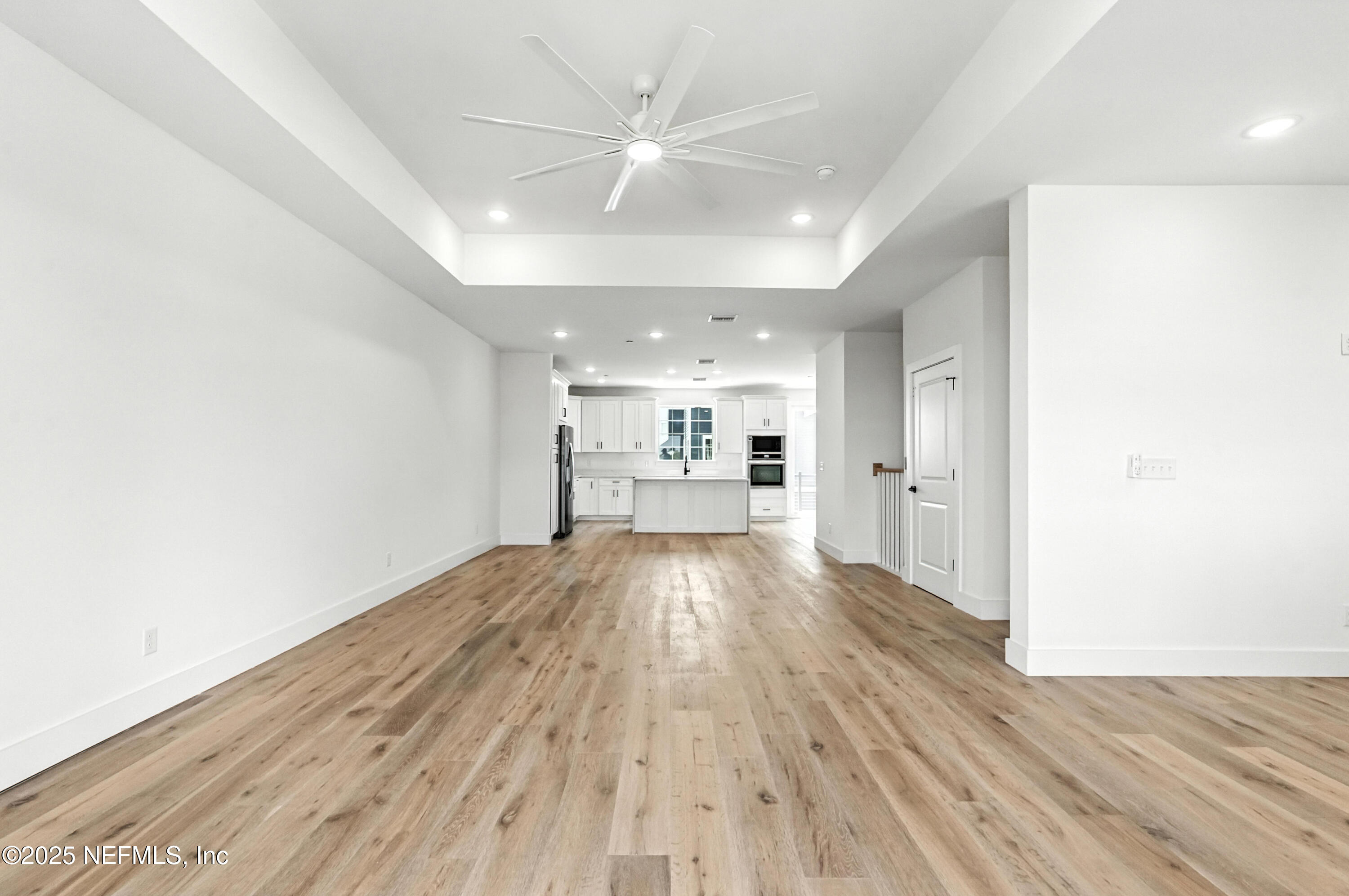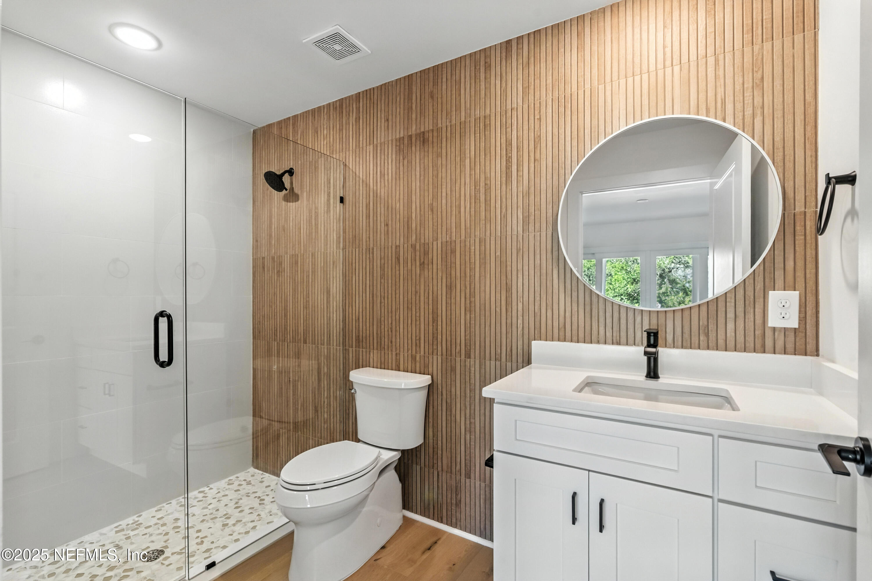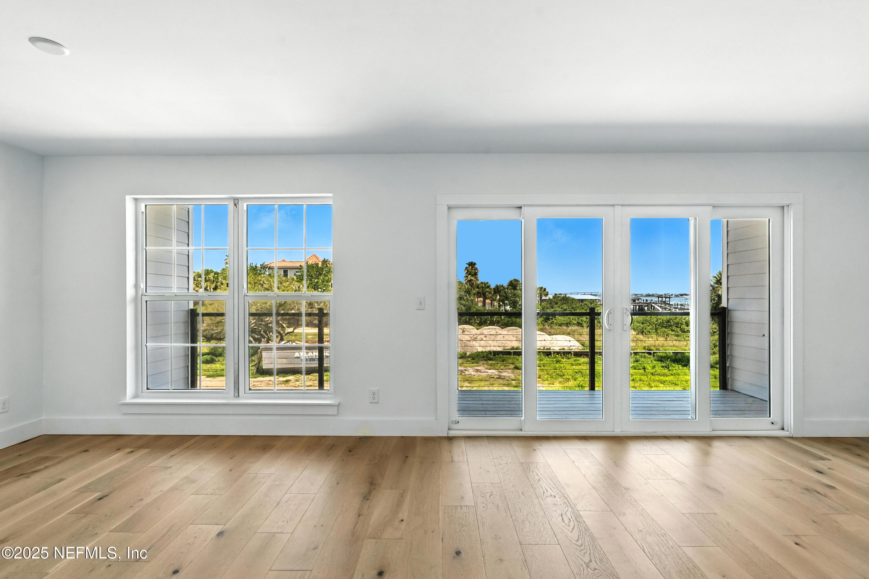 Additional features include wide-plank wood flooring throughout, a tankless water heater, and pre-plumbing for a water softener in the garage. Stylish details and modern finishes enhance the residence's refined coastal character.