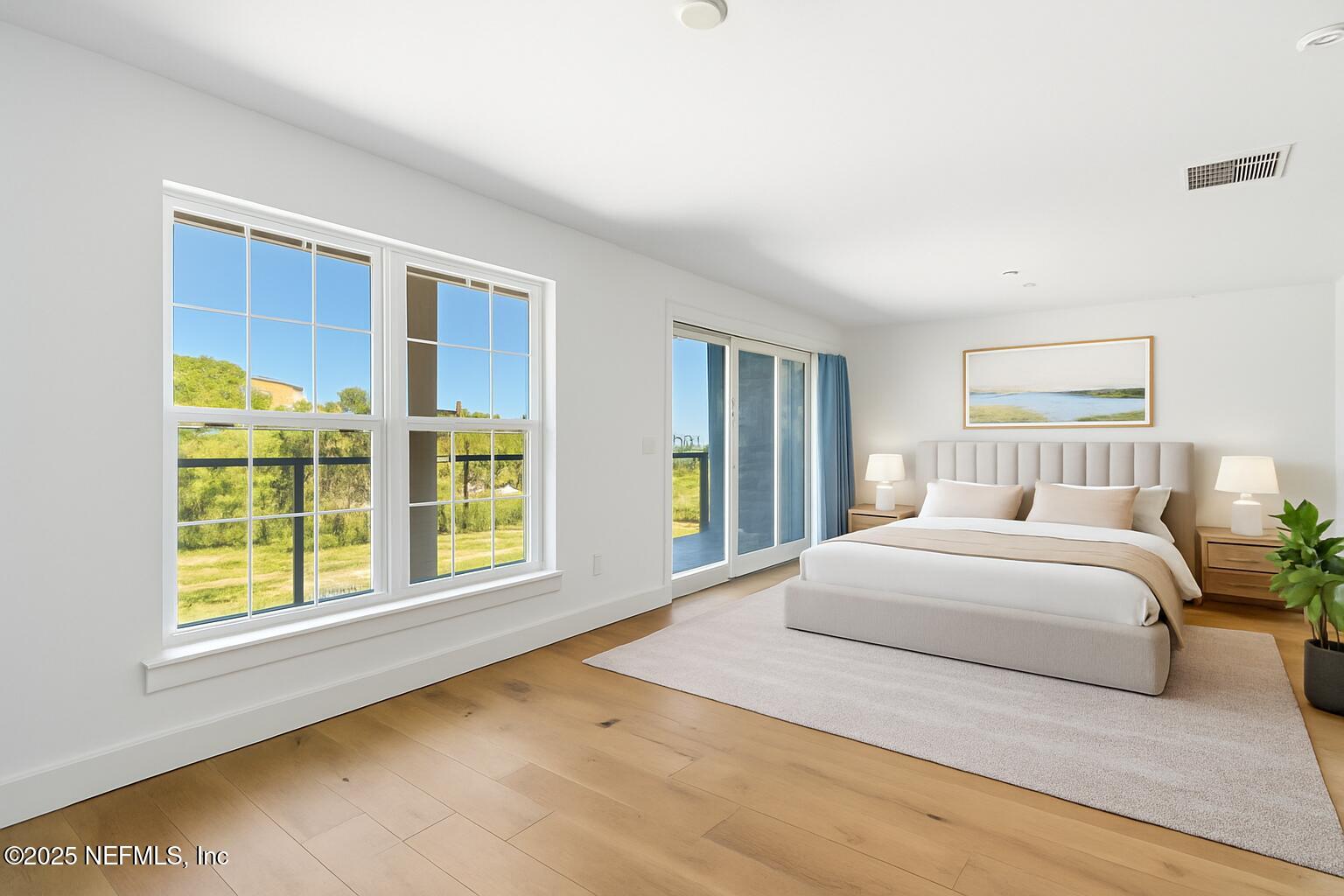 On the second floor, the spacious primary suite is its own retreat, offering a spa-inspired oversized bath, a large walk-in closet, and a private covered balcony with peaceful water views. Two additional bedrooms and a full bath complete this level.